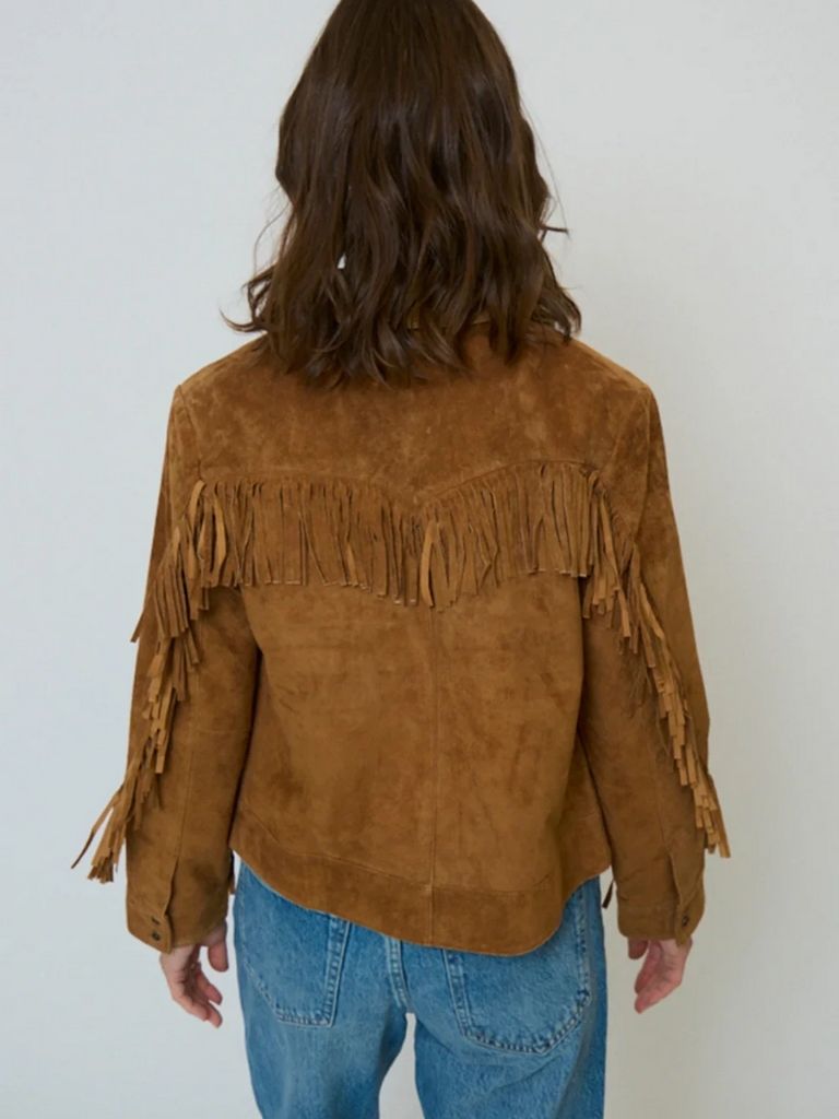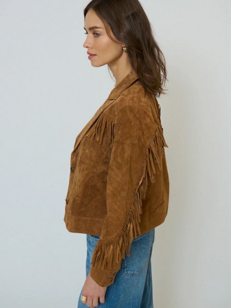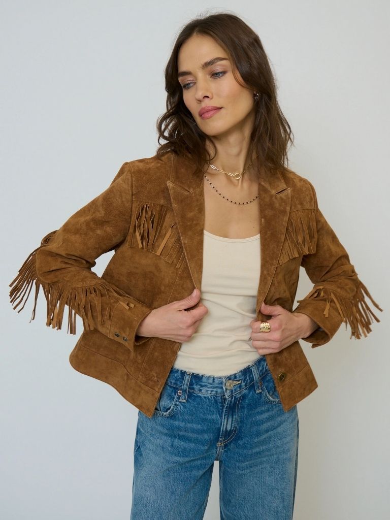 Saffron Coated is a wax coated, deep red denim with a leather-like look. It features silver hardware, tonal stitching, a clean hem, and a small black back patch.