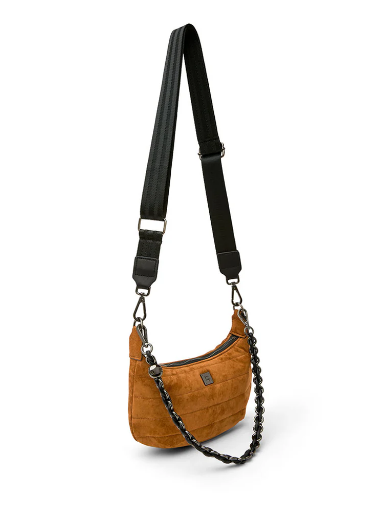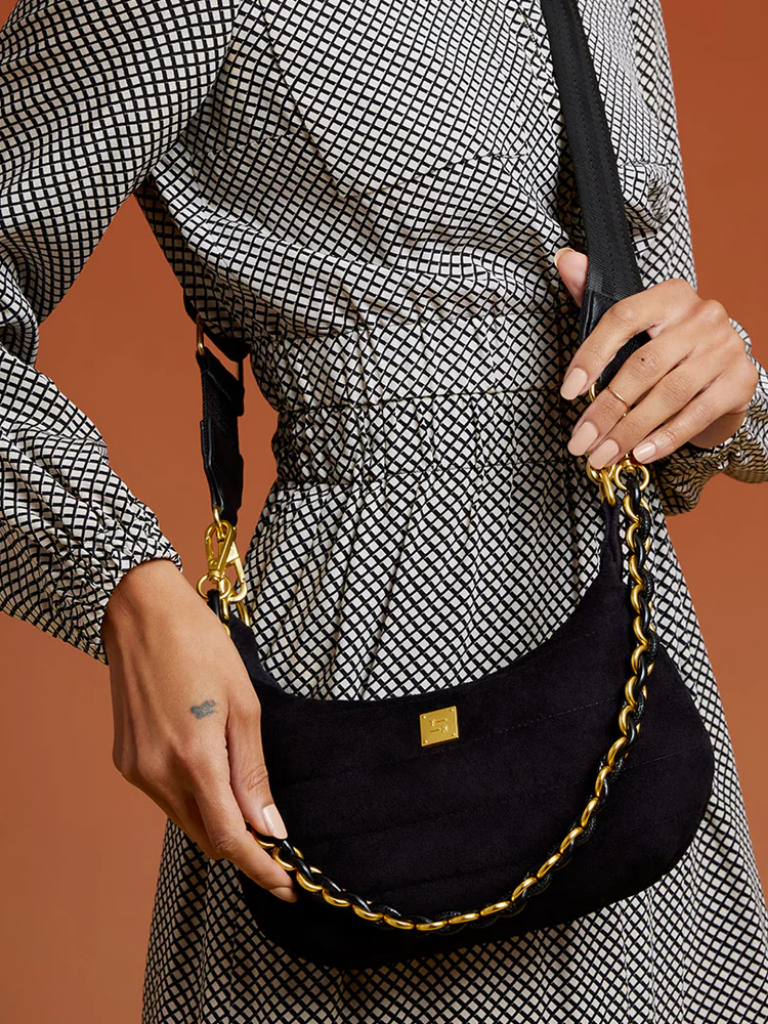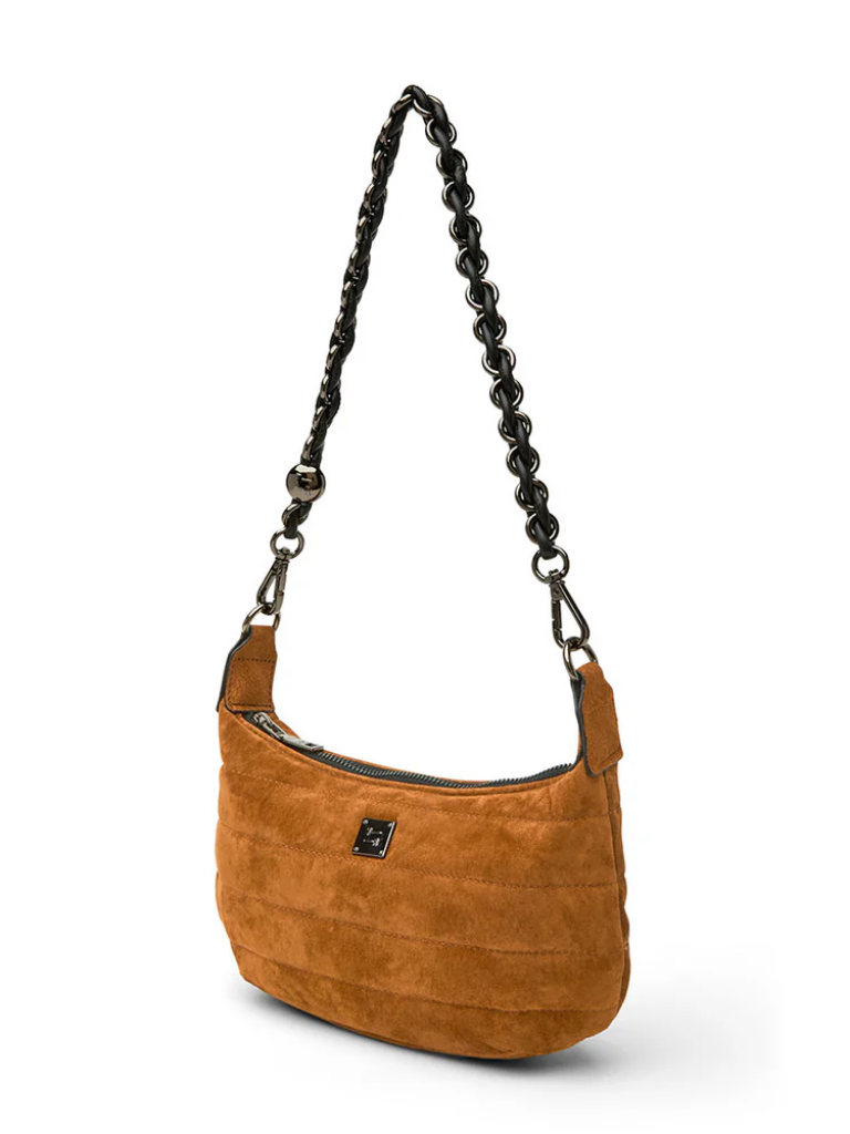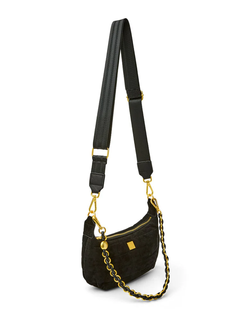Our signature quilting elevates to the next level in plush luxe suede. Wear it your way with the detachable woven luxe and chain strap…