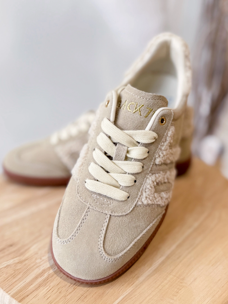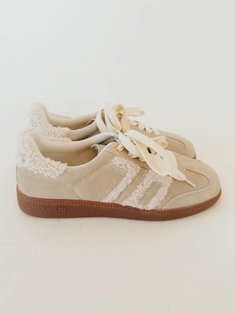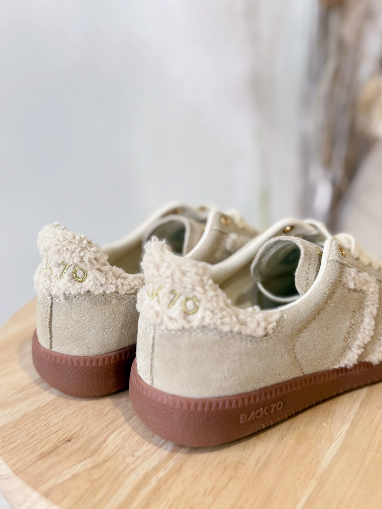 Step into sensory indulgence with the Cloud 6N sneaker, where understated luxury meets modern Italian craftmanship. Made from luxe suede leather, a gum rubber sole and featuring the iconic Back 70 mark in cozy faux shearling, these neutral suede sneakers are a total package of tactile luxury and casual comfort in a high-end fashion package.
